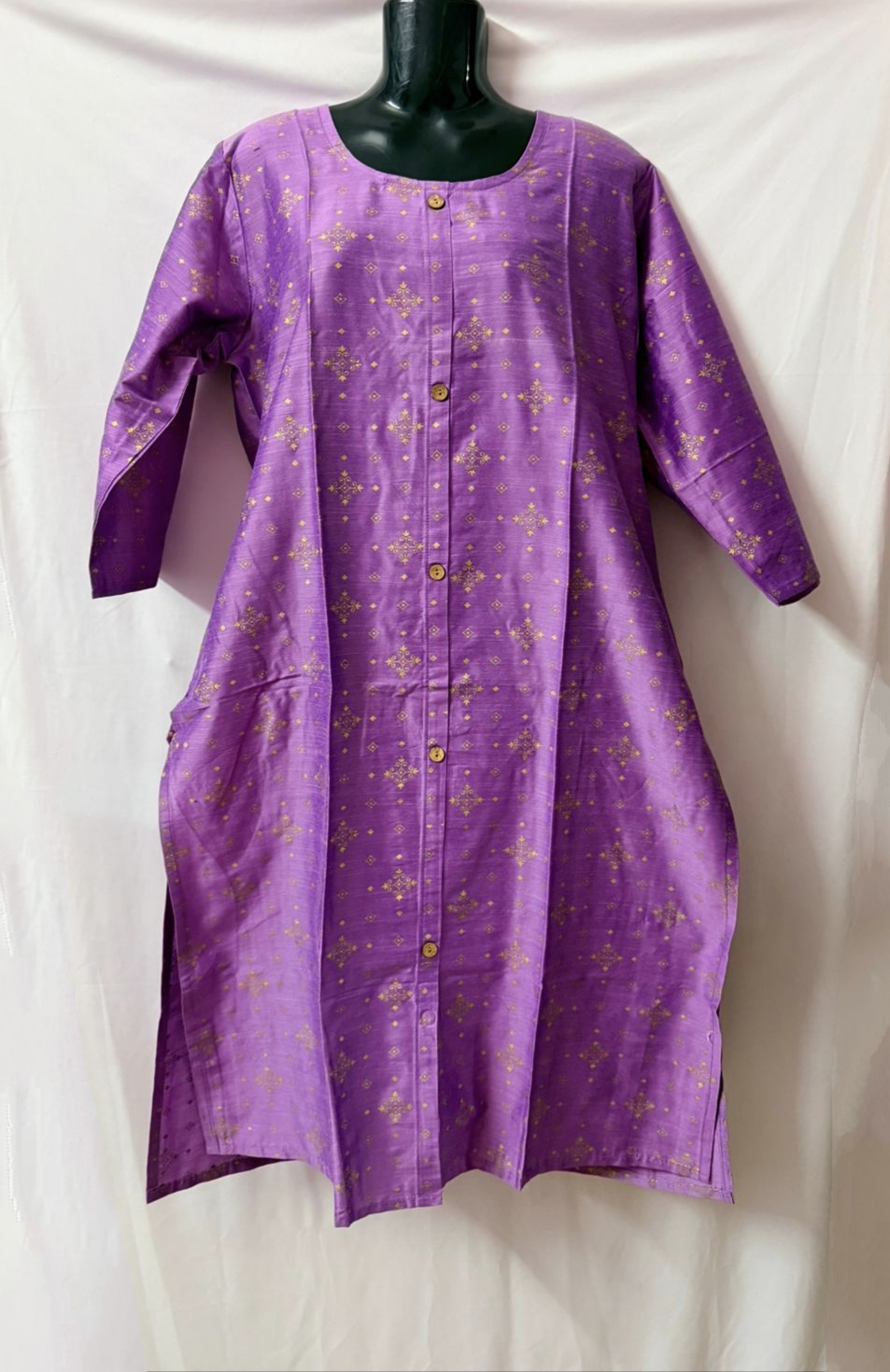 *Brand: Silk kurtis* Side slit With side pocket Size mentioned in pic M-38" L-40" Xl-42” Xxl-44" 3xl-46" Height:44" Rs.450 free ship